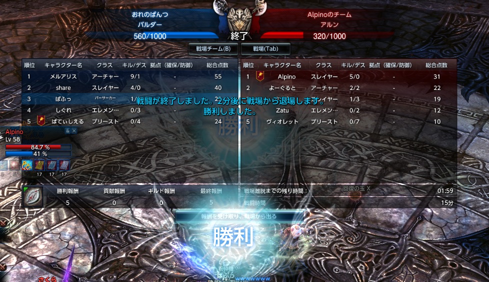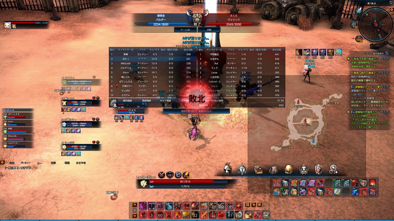 二日目でNoPK鯖同士の鯖になったのでだいぶ楽に戦えるんじゃないかと思ってましたが大間違いでした