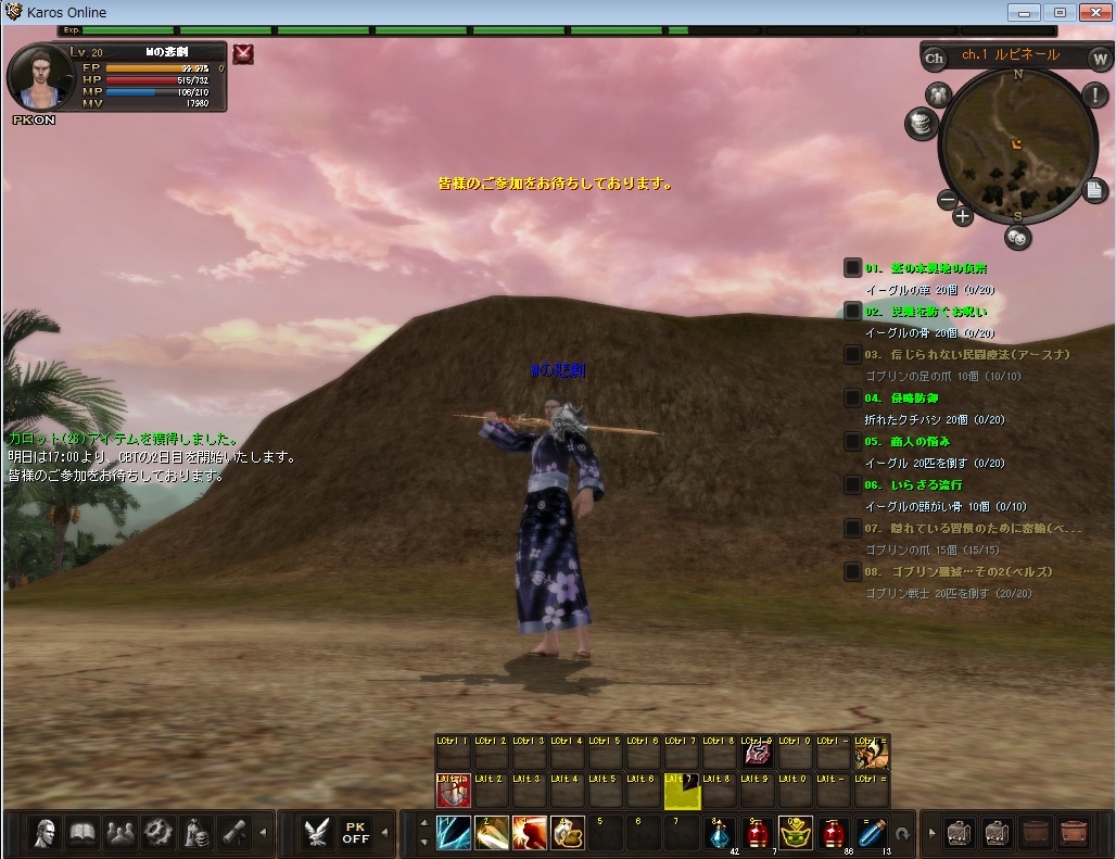 今日のクローズドβはちょっと狩りをしてログアウトした